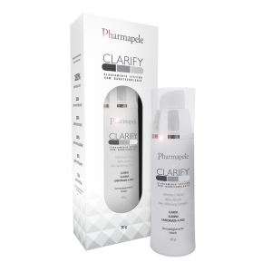 O Clarify, da Pharmapele, é um clareador que promove um efeito global no clareamento das manchas. Com três ativos de destaque – Skin Whitening Complex, Nicotinamida e Vitamina C – o produto promove efeito similar à hidroquinona, sem os malefícios da fotossensibilidade. O é um complexo vegetal clareador, que promove esfoliação muito superficial da pele. Já a Nicotinamida é uma vitamina do complexo B que inibe a transferência dos melanossomas, reduzindo a pigmentação cutânea, além de melhorar a função da barreira cutânea. Por fim, a Vitamina C Nanoencapsulada possui intensa ação antioxidante e reduz a produção de melanina.