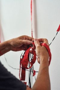O projeto “Ofício:” nasce em 2019 com a realização das exposições “Floresta D´Água” de Afonso Tostes e “Drama O´Rama” de Ana Mazzei, quando foi experienciada a marcenaria na edição Farpa. Com o advento da pandemia de Covid- 19 em 2021, o projeto tomou os espaços virtuais em Ofício: Web, com as mostras “Combater ficção com ficção” de NewMemeseum, “Resiste!” de Roberta Carvalho e “#o.lhar” de Raquel Kogan. Em 2022, retornando aos corredores das Oficinas de Criatividade, foram realizadas as exposições “A Vida das Coisas” de Ana Prata e “Propostas de Reencantamento” de Marcela Cantuária, ao pensar o ofício da pintura em Mancha. No interesse em dar continuidade ao projeto Ofício, que toma os espaços de passagem das Oficinas de Criatividade com mostras que dialogam com as linguagens estabelecidas nos ateliês de criação artística e desenvolvimento educativo, optou- se partir para a linguagem da arte têxtil como vetor discursivo para este ano de 2023.
