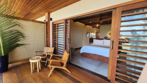 As confortáveis 14 suítes são divididas em três categorias distintas e possuem 55 m², todas com vista panorâmica para a Barra do Cunhaú, amplas varandas e amenities veganas dispostas em charmosas peças de cerâmica. Na decoração, os móveis de madeira, objetos e fotografias de diferentes partes do mundo compõem um ambiente minimalista, que busca proporcionar um espaço de descanso e rejuvenescimento, perfeito para relaxar após um dia de sol e aventuras no mar.