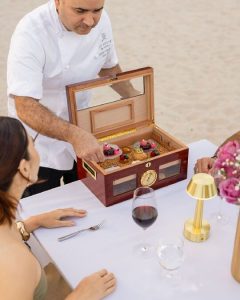 Com reserva de 24 horas necessária, os hóspedes e não hóspedes desfrutarão de um requintado menu de 4 pratos sob as estrelas, elaborado pelo Chef Executivo Adrian Colameco, no ambiente mais exclusivo: à beira do Oceano Atlântico na Praia de Bal Harbour, harmoniosamente acompanhado com Taittinger Brut La Française.