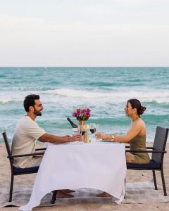 O valor da experiência é de $400 mais impostos e taxa de serviço, incluindo uma garrafa de Taittinger Brut (para cada 2 pessoas) e bebidas não alcoólicas. O local de encontro é em La Gourmandise, onde o anfitrião recepcionará o casal e os acompanhará até a experiência de jantar à beira-mar. A experiência acomoda de 2 a 4 pessoas por mesa. Em caso de mau tempo, o jantar será transferido para um local interno ou uma data alternativa será oferecida dentro do período de estadia.