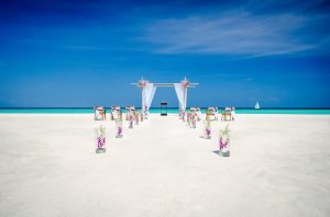 O mar azul turquesa que envolve o One&Only Reethi Rah, nas Ilhas Maldivas, forma uma paisagem paradisíaca que combina perfeitamente com o romantismo de uma festa de casamento. A celebração pode acontecer na praia de areia branquinha com vista estonteante do mar ou ainda em frente à vila privativa do casal no resort, com uma porção extra de intimidade e romantismo. Totalmente planejados de acordo com o sonho dos noivos, cada casamento que acontece ali é único – seja uma grande celebração com DJ até o amanhecer ou uma pequena cerimônia apenas para o casal – e cuidadosamente planejado por um coordenador de eventos. Arranjos personalizados de flores frescas e típicas das ilhas Maldivas enfeitam a cerimônia e um carrinho de golf especialmente decorado para os recém-casados adiciona charme e bom humor a esse momento tão especial.