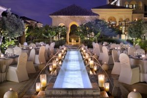 O One&Only Royal Mirage, em Dubai, também oferece uma gama de opções para os noivos que sonham em trocar as alianças longe de casa. Para uma celebração ao ar livre, os jardins do resort são perfeitos e, decorados com sofisticação, são personalizáveis ao gosto do casal, se transformando no cenário perfeito para uma celebração única. A esplanada e o pátio do resort também podem servir de palco para esse momento especial e conferem toques de autenticidade ao décor, graças a arquitetura arábica. Se o casal preferir uma celebração mais tradicional, os salões de festa estão disponíveis e garantem uma celebração clássica para até 350 convidados.