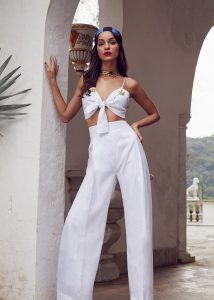 A marca ressalta a mulher que se veste para curtir os resorts do mundo, com macacões que revelam a pele, assim como os tops com amarrações para serem usados com calças de cintura alta. Transparência e fluidez dão o contorno, reforçando a escolha da seda e do linho nos tecidos.