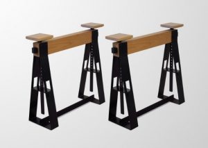 O Cavalete Aço chama atenção por suas formas geométricas variadas. A peça, desenhada por Angelo Duvoisin, celebra o estilo Bauhus com sua mistura de metal e madeira.
