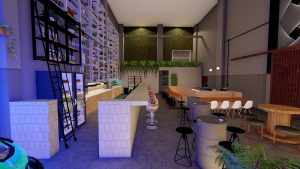 O Inbox manterá toda a essência da antiga fábrica do Café Damasco, potencializada por uma iluminação planejada nos mínimos detalhes. A estrutura do barracão original será mantida, preservando a história do espaço. As baquetas do bar, por exemplo, foram desenvolvidas a partir das cadeiras do antigo auditório. Já as prateleiras que acomodam as bebidas no novo bar surgiram a partir da utilização de materiais encontrados entre os escombros da indústria desocupada. Para dar um clima ainda mais urbano para o espaço, as paredes do clube receberam grafites do artista Rodrigo Nickel.