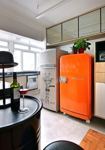 Realizada pela arquiteta Ana Yoshida, a cozinha evidencia o refrigerador laranja que compôs muitas casas nas décadas de 60 e 70. |Foto: Sidney Doll