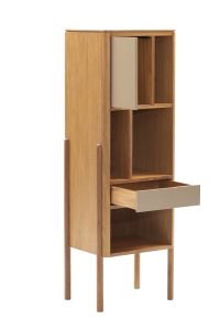 Acabamento – Estrutura em Louro Freijó natural ou tingido | Frentes de gaveta e porta em laca – Dimensões LxPxA (cm) – 51x40x150