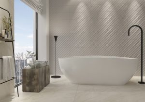 Linhas simples e formas geométricas em relevo apresentam efeito tridimensional em peças de 20X20cm
