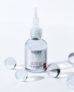 Para reduzir os impactos causados por esse desequilíbrio, Vichy, marca nº1 em anti-idade na Europa², desenvolveu o Liftactiv H.A. Filler: o 1º sérum concentrado com 1,5% de ácido hialurônico para o rosto e olhos, com efeito preenchedor imediato e progressivo de Vichy. Com ácido hialurônico, peptídeo e água vulcânica de Vichy, o H.A. Filler repõe até 100% da perda diária do ácido hialurônico na pele¹.