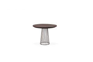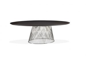 Tampo em MDF Marchetaria Lâmina Uraca. Base com estrutura de ferro revestida em multilaminado lâmina Uraca. Cor única. (∅ 135 x 76 cm)