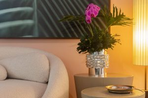 Matteo Cibic é um designer italiano reconhecido mundialmente por trabalhar o luxo em peças alegres e com formas antropomórficas trazendo funções híbridas, mas sem deixar de lado o trabalho manual. Com essa bagagem trouxe sua visão para criar a Coleção Smooth que é o resultado de um experimento de ciência ótica e design. “A ideia foi criar uma coleção de objetos nos quais um sólido platônico (metal) flutua no ar sobre uma gelatina colorida e transparente (resina). As cores e seus reflexos mudam a forma dos volumes, transformando o todo em um objeto mágico’’, afirma Matteo.