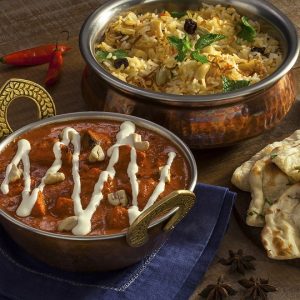 Os pratos principais da primeira opção são Butter Chicken (cubos de frango marinados no iogurte com especiarias e cozidos em molho de tomates frescos e manteiga, decorados com creme), Meat Korma (cubos de filé mignon cozidos com creme de curry e decorados com amêndoas) e Tarka Daal (Lentilhas cozidas em molho cremoso, preparadas com alho, gengibre, coentro e especiarias). Os principais ainda são acompanhados por Kashmiri Pulao (arroz cozido com especiarias e frutas secas) e Garlic Naan (Pão tradicional indiano preparado com alho e assado na hora no forno ‘tandoor’). Já a sobremesa Gulab Jamum and Kulfi (bolinhas feitas com leite em pó, mergulhadas em calda doce, decoradas com amêndoas e castanhas de caju, servidas com sorvete tradicional indiano).