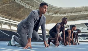 O atleta dos 110 metros com barreira, Gabriel Constantino, também estrela campanha de alfaiataria tech.