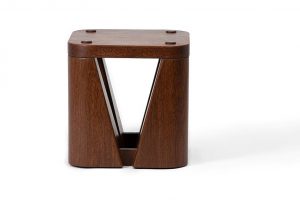 O móvel é executado com técnica de encaixe, sem uso de pregos ou parafusos, e pode ser usado como banco, mesa de apoio e mesa de centro. Disponível em diversos tipos de madeira (Sucupira, Jequitibá Rosa, Freijó, Cedro Rosa e Tauari), a peça pode ainda fazer composição com outros móveis, sendo inclusive um dos protagonistas do ambiente.