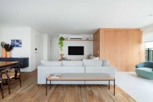 O Estúdio Maré, especializado em projetos de design de interiores, assina apartamento de 147m2 no bairro de Pinheiros, em São Paulo. O apartamento, que pertence a um jovem casal na faixa dos 37 anos com dois filhos pequenos, passou por uma notável metamorfose para se tornar um espaço de luxo, conforto e funcionalidade.