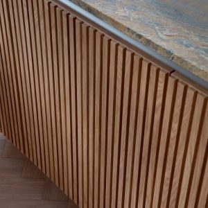 O ‘ripado’ ganhou uma nova finalidade na coleção Caminhos, da Florense. O design, muito utilizado em paredes, proporciona um ambiente mais aconchegante, e agora chega ao mobiliário fixo de cozinhas, SPAS e estantes. O relevo, criado na madeira, de forma artística, culmina na beleza extraordinária que só pode ser vista na simetria, tanto horizontal quanto na vertical.