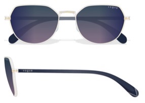 Este modelo fino em metal apresenta uma ponte em relevo gravada, ângulos modernos, detalhes sutis e hastes características. Este look está disponível nas cores ouro clássico ou rosa polido e preto moderno ou bronze com lentes degradê suave ou uniformes e escuras, com hastes em acetato com cores combinando.