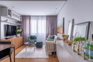 Experiente, a arquiteta ressalta a importância de uma conversa alinhada com os moradores para entender as expectativas e conhecer os móveis que porventura já tenham para realizar os ajustes batizados como ‘maquiagem’. “Adoto esse termo por se tratar de um projeto sem grandes alterações estruturais, como a demolição de paredes, mas que com a aplicação dos produtos certos, proporciona um visual belíssimo, sem deixar evidente o vínculo temporário do imóvel”, detalha. Ela assegura que alterações pontuais propiciam uma atmosfera charmosa e que ressoa a personalidade e a satisfação de nomearem aquela edificação como sua casa.
