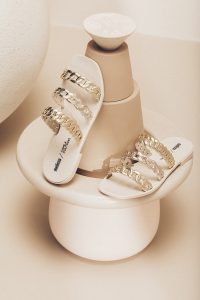 Sobre a coleção, ela reforça a preferência por modelos baseados nas tendências mais chiques e dos metais. “É uma tendência que veio bem forte em muitas marcas que a gente admira. Então, a gente trouxe um pouco disso, mas com uma cara mais Brasil, pra gente usar muito no verão também. Um dos modelos que mais gosto é o que vem com uma espécie de tornozeleira metalizada, veste muito bem!”, ressalta.
