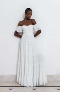 Eventos mais descontraídos pedem por peças menos estruturadas e mais fluidas, garantindo movimento e leveza na produção. É uma forma de garantir elegância e conforto ao longo de toda a cerimônia, deixando a noiva se movimentar, dançar e curtir a noite toda!