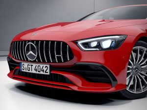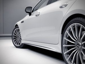Seu design externo expressivo conta com capô baixo, silhueta marcante e visual robusto, que dão ao modelo o aspecto esportivo que o caracteriza imediatamente como um novo integrante da família GT. Seus Faróis MULTIBEAM LED, teto solar elétrico, roda de liga leve AMG de 20” com raios múltiplos e a grade de proteção do radiador exclusiva da Mercedes-AMG reforçam toda a esportividade do modelo.