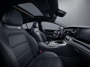 O interior do novo coupé esportivo de quatro portas mantém a elegância sem deixar de lado os traços fortes e marcantes de um veículo das pistas. Os painéis de controle podem ser manuseados intuitivamente e configurados de acordo com a preferência do cliente. Alto nível de individualização e tecnologias de um superesportivo também se destacam no novo Mercedes-AMG GT 43. O modelo conta com widescreen cockpit e teclas no volante AMG, que facilitam o uso das tecnologias abordo. O conforto interno se destaca com a opção de iluminação ambiente disponível em 64 cores, aquecimento dos bancos do condutor e acompanhante, climatização automática com THERMOTRONIC, que controla o clima interno em quatro zonas, garantindo o máximo do bem-estar a todos os ocupantes abordo. Além disso, o modelo conta com o sistema de som Burmester, que traz 14 alto-falantes de alto desempenho e Amplificador DSP de 10 canais com uma saída total de 640 watts.