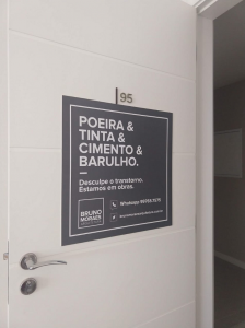 De bem com a vizinhança: plaquinha bem humorada para avisar os moradores vizinhos sobre a ocorrência de obras no local | Divulgação