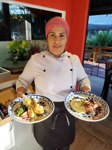 Márcia Borges está no comando da cozinha do Olivença Cozinha Ibérica há dois meses. Conta com mais de dez anos de atuação na gastronomia, boa partes deles nas casas do Grupo Vino!, do qual o Olivença faz parte. Iniciou no grupo atuando no C la Vie. Depois, esteve por quatro anos no Terra Madre, sob tutela de Ivan Lopes e Lênin Palhano. Em seguida, passou pelo Olivença, trabalhando ao lado do chef Gilberto Prado, e também pelo Vino! Batel.