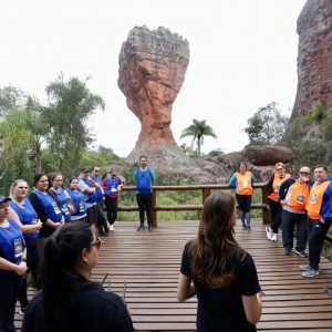 “Os treinamentos objetivam viver, na prática, conceitos de Gestão e Liderança, passando por desafios que exigirão planejamento, adaptabilidade e gestão de riscos, levando os participantes ao autoconhecimento e mudanças de mindset, com foco em crescimento”, pontua Andressa. Segundo a psicóloga, todos esses temas, que são imprescindíveis para um gestor atual, podem ser vividos nos deslumbrantes espaços do Parque Vila Velha: Arenitos com mais de 300 milhões de anos, uma cachoeira escondida no coração do Parque, e atividades nas exuberantes Furnas, local onde, com sorte, é possível apreciar o recolhimento dos Andorinhões. E obviamente, os participantes precisam completar provas, pensar e se movimentar muito em todos esses locais.