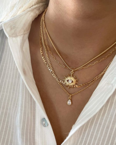Uma das dicas é escolher uma corrente longa (70 a 80 cm) para acomodar todos os pingentes de maneira confortável e sem incomodar a pele ou prender nas roupas.