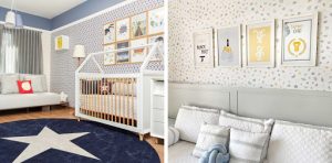 Um recurso interessante para dar outra cara ao quarto de bebê é escolher um bom papel de parede infantil. Quando se pensa em bebês, logo se imagina um papel de parede com temática de desenhos, personagens de histórias em quadrinhos, super-heróis ou princesas. Mas como a tendência está no atemporal – e estampas datadas costumam cansar as crianças – a opção é escolher um papel de parede mais moderno, com figuras geométricas, como listras e chevron, florais ou poás, por exemplo.