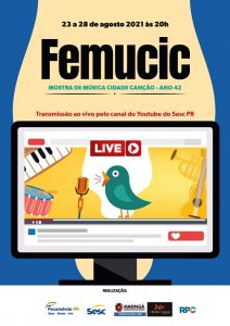 O mundo mudou e o Femucic – Mostra de Música Cidade Canção mostra sua resiliência ao migrar do palco para a internet. Realizada pelo Sesc PR e pela Prefeitura de Maringá, com o apoio da RPC, a 42ª edição do evento será realizada entre os dias 23 e 28 de agosto num formato inédito: pela internet.