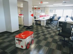 Focado no mercado indoor – espaços como shoppings centers e condomínios industriais e residenciais, os robôs têm capacidade de carregar até 30kg em produtos. A inteligência artificial de navegação permite que os usuários acompanhem o status de entrega com precisão e sua bateria tem autonomia de 12 horas.