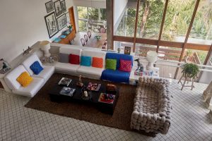 O projeto original da década de 1970, assinado pelo arquiteto Guilherme Scheliga, encantou Mateus e Paula especialmente por causa do último piso, que se abre para um gramado. As alterações, portanto, foram pontuais: a primeira, logo após a compra, incluiu um sistema de captação de água da chuva – utilizada para molhar o jardim e lavar os dois carros de modelo híbrido –, além da instalação de painéis solares e uma composteira.