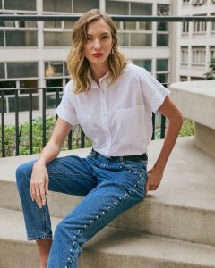 As calças jeans ganharam uma nova aparência nesta temporada – e não estou falando sobre formato! Wide legs, mom jeans, retas, boyfriend, skinny, entre outras, recebem aplicações e estampas, ganhando ainda mais destaque. Estes elementos podem ser tachinhas, pedrarias ou brilhos aplicados no comprimento, bolsos ou apenas como um detalhe especial. Já as padronagens que estão em alta são as listras ou estampas leves. A tendência permite que essa peça consiga transitar com mais facilidade em eventos que fogem do casual, já que dão um toque de glamour ao outfit!