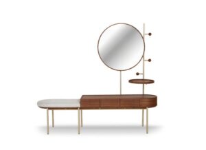 Em sua primeira colaboração para a marca, o designer Di Alberto, explora ao máximo o equilíbrio entre conforto e elegância. Cada detalhe é minucioso, buscando atender não apenas a funcionalidade, mas gerando uma complexidade sensorial muito refrescante. O visual e a estética de cada peça ganham singularidade própria, proporcionando uma conexão única por meio de uma volumetria sofisticada que transita com maestria entre o moderno e o suave. Evocando experiências profundas e transmutando o significado de um mobiliário comum para uma verdadeira experiência.