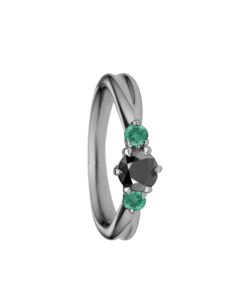 Para quem busca romper com a tradição do diamante solitário, as pedras coloridas – como safiras, esmeraldas e rubis – ganham ainda mais personalidade quando combinadas com metais contrastantes. Uma tanzanita em tom azul-violeta se destaca sobre o ouro rosé, enquanto o rubi ou esmeralda adquirem profundidade sobre ouro negro, demonstrando como o jogo de cores pode transformar um anel por completo.