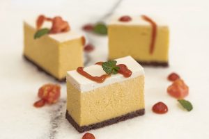 Caramelodrama (Presidente Taunay e Fresh Live Market): Bolo de coco tostado com creme mousseline de chocolate branco e pé-de-moleque de paçoca (R$ 13,90).