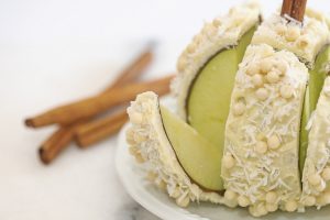 Mary Ann Apple Factory: Maçã verde caramelada com beijinho de chocolate branco (R$ 19,90).
