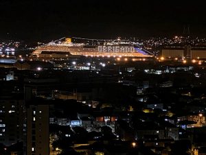 Tripulantes do navio Costa Fascinosa homenageiam a cidade de Santos, autoridades e profissionais da saúde