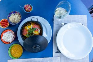 “Moqueca de Peixe com camarões, arroz de coco queimado e farofinha de banana da terra” é uma deliciosa sugestão de um prato típico da Bahia