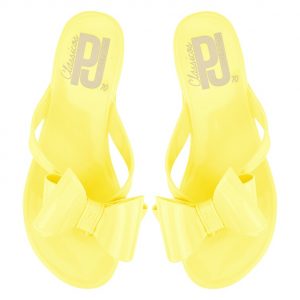 A Petite Jolie apresenta diversos acessórios, entre sandálias, chinelos, rasteiras com tiras e laços, sandálias com salto bloco, tamancos, it bags estruturadas e phones bags que levam a cor de forma divertida e estilosa.