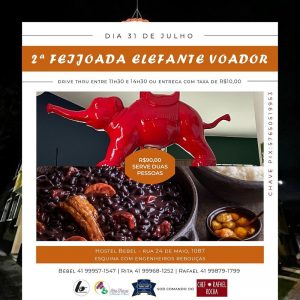 No dia 31 de julho, sob o comando do chef Rafael Rocha, acontece a 2ª Feijoada Light Elefante Voador, espaço que fica no Hostel Bebel, no Vale do Pinhão, bairro Rebouças.