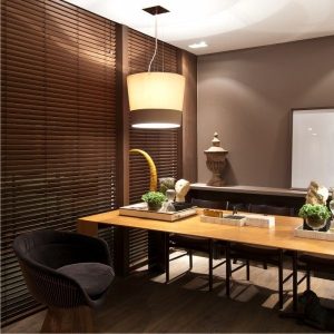 Para não tornar sua sala de home office um ambiente pesado e cansativo, aposte em paredes com tons mais suaves e deixe as cores vivas para os itens decorativos. Os papéis de parede, que podem sem aplicados em todo o espaço ou em apenas uma parte dele, são uma ótima maneira de acrescentar vida ao ambiente.