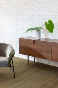 A segunda criação é a Catalá, composta por buffet e gabinetto, que traz a dualidade entre o lúdico e o formal, uma releitura contemporânea dos móveis de bar dos anos 50. Simples e descomplicadas, as peças se destacam por seus puxadores geométricos, os diferentes tons de madeira e a abertura inferior que dão um forte caráter estético.