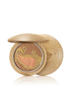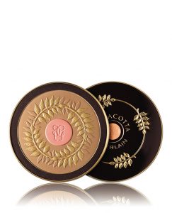 Já Terracotta Route des Indes é uma verdadeira peça para os amantes de Terracotta. O bronzer delicadamente guardado em uma embalagem de madeira bruta é gravado com flores paisley em coral e dourado, reinventando-se como um bronzer, blush e iluminador. Tudo em um só item de colecionador.