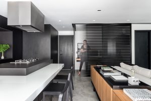 Uma dica para delimitar ambientes sem deixar de lado as possibilidades de integração é, mais uma vez, utilizar a marcenaria e serralharia a seu favor. Portas de correr podem separar ou unir ambientes, já painéis vazados definem o espaço sem bloquear o visual. “O mais importante é priorizar a circulação e a ergonomia do local, aproveitando-o ao máximo”, reforça Lisa Zimmerlin.
