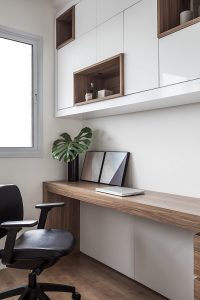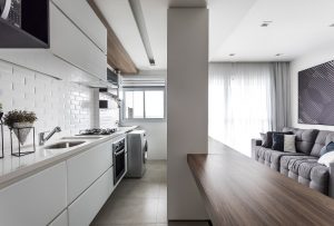 Nem sempre a quebra de paredes é uma realidade para as pessoas. Nesses casos, uma marcenaria funcional pode ser uma grande aliada para quem deseja aproveitar melhor os espaços. A aplicação de mobiliário sob medida pode garantir mais de uma opção de uso para um mesmo móvel, além de diminuir a quantidade de elementos no mesmo ambiente. Os móveis soltos também podem ser escolhidos de forma que atendam a diferentes funções e finalidades. “Um banquinho pode se tornar uma mesa lateral ou um sofá pode virar uma cama. O importante é diminuir os elementos do ambiente, menos é mais” afirma a arquiteta Carolina Danylczuk.