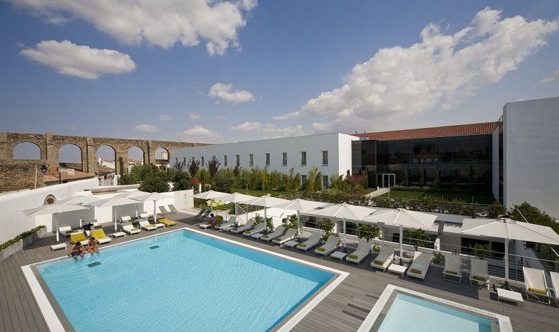 Localizado no coração de Évora, em pleno centro histórico da principal cidade alentejana, este hotel reúne elementos modernos em uma construção quinhentista com 64 quartos, piscina, restaurante, bar e spa. Alguns dos quartos têm vista para o Aqueduto da Água de Prata, que deu o nome ao hotel.